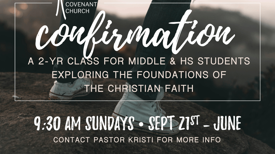 Confirmation is an opportunity for students to explore the foundations of the Christian faith. Students will learn about how the Bible fits together, and discover what it has to say about God, ourselves and the word. It is a two-year class (Sept - June) overviewing both the Old and New Testaments. At the end of the class, students will be invited to affirm their faith in a confirmation ceremony during the worship service.