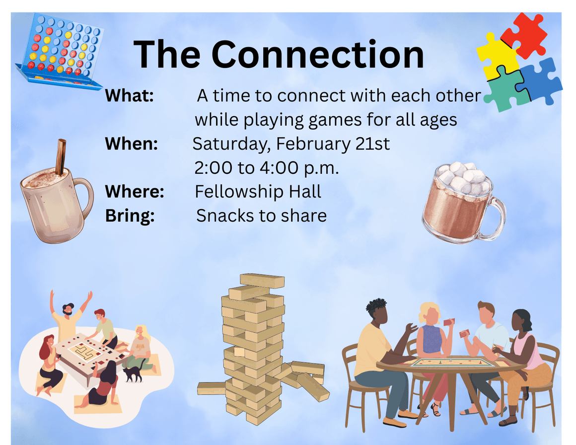 February 25- 18 hours of prayer. An opportunity to sign up for a half hour slot dedicated to praying for our church, our community, our country, and our world.