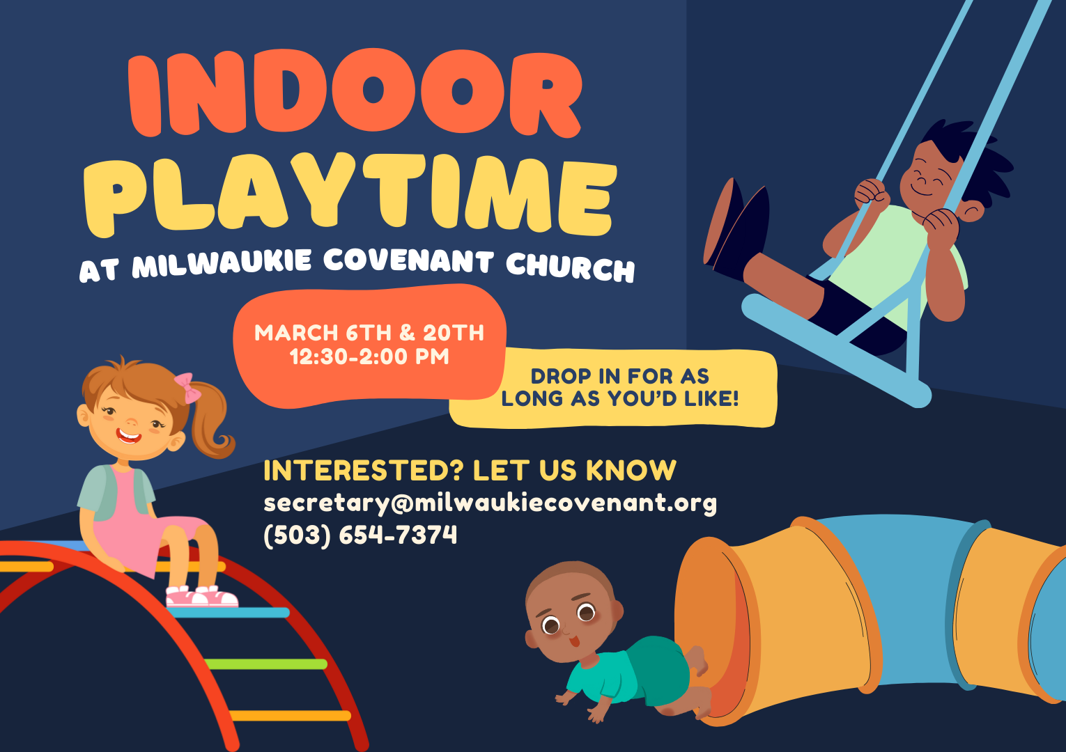 February Indoor Playtime is being held on February 5th and 19th from 12:30 to 2:00 p.m.
